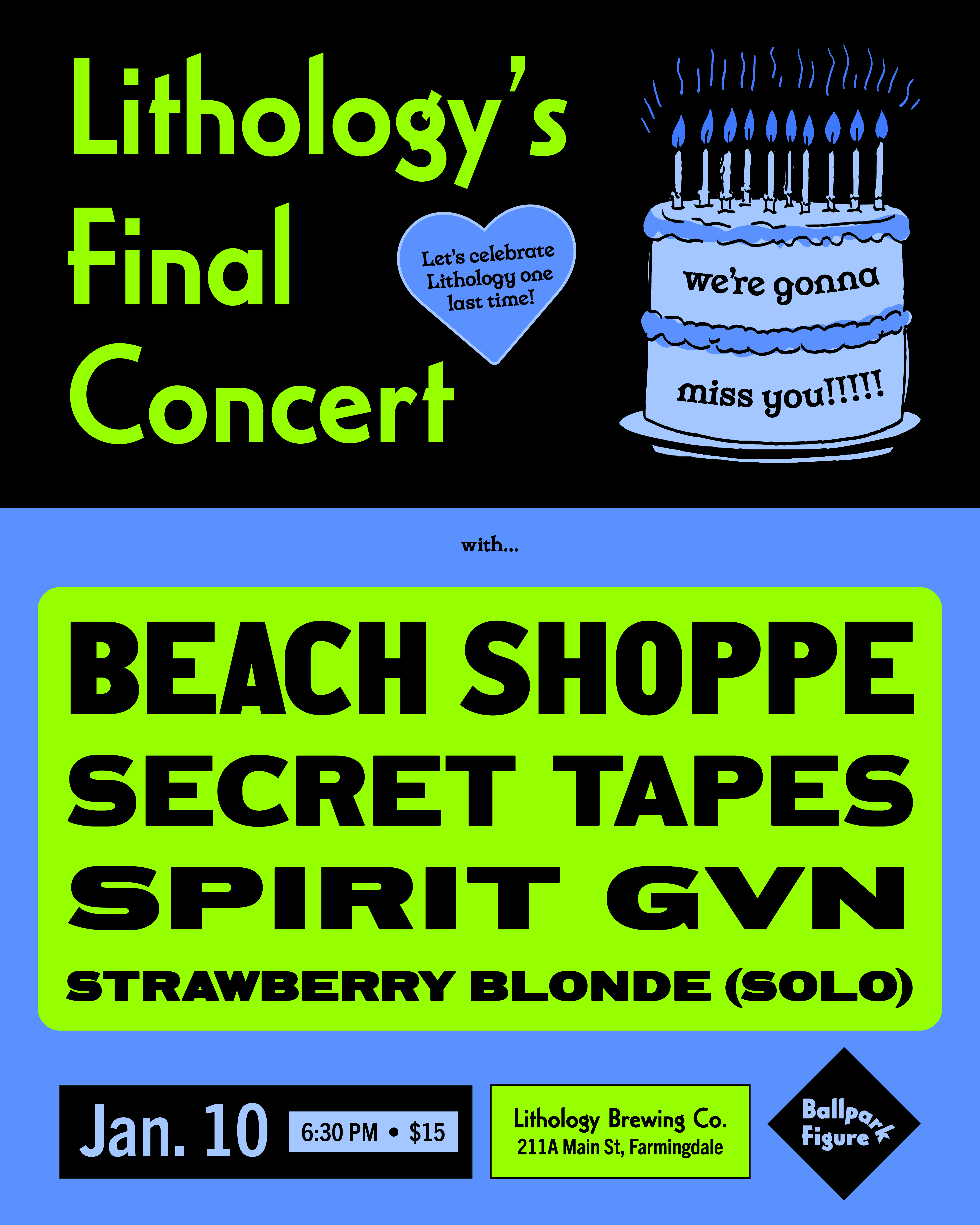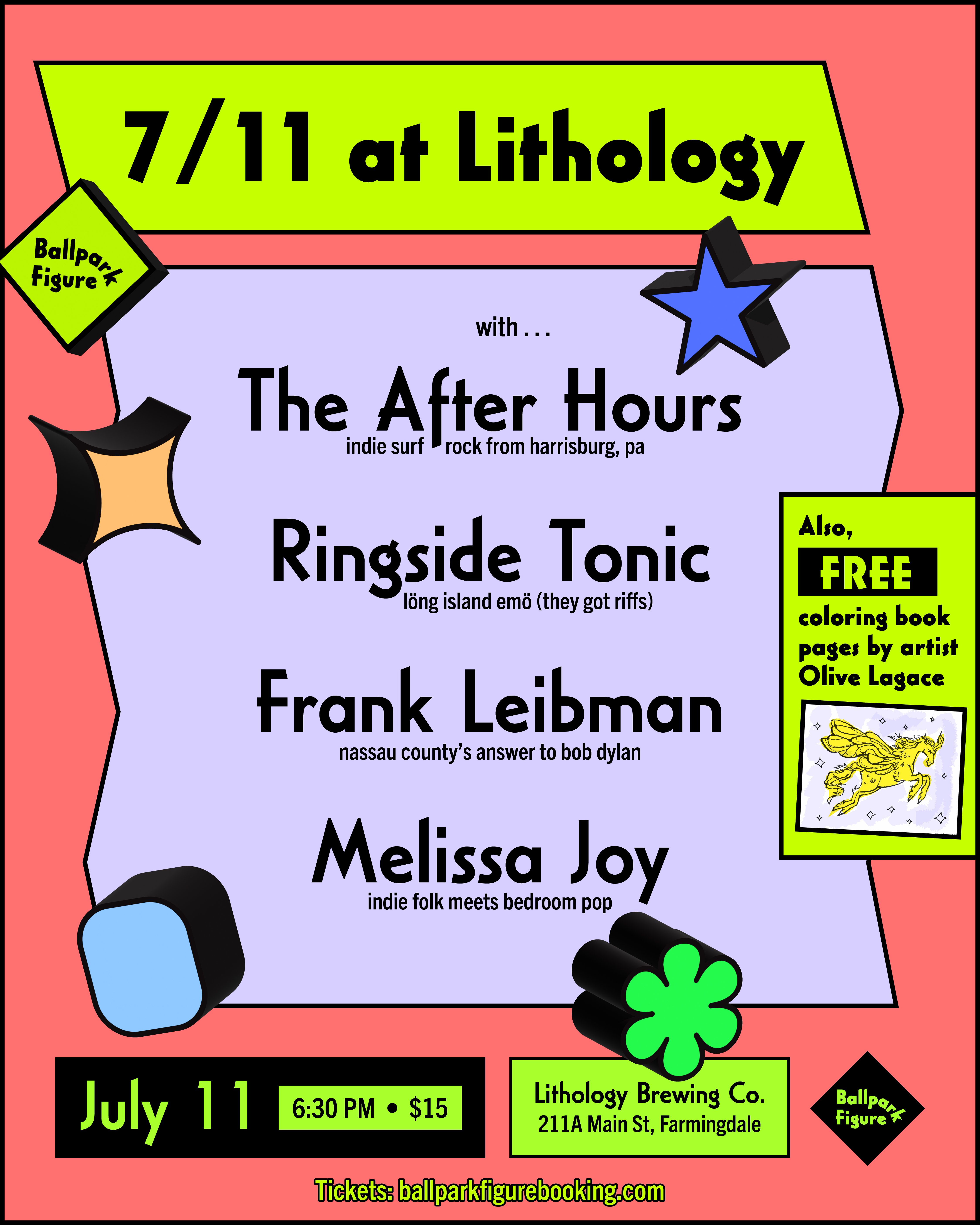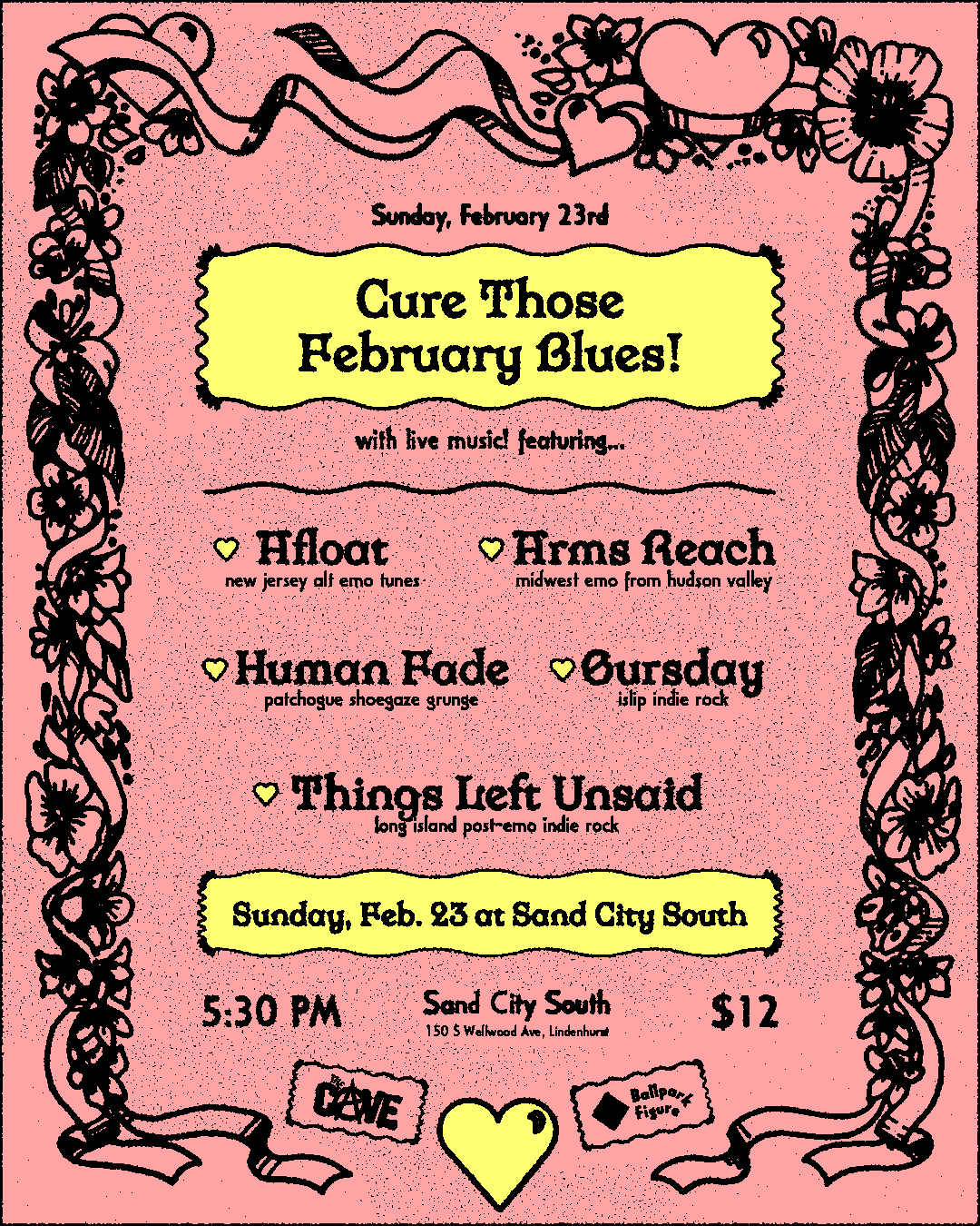 concert posters i made for: skateboarding festivals, mermaid-themed anniversaries, record releases, friends on tour, SXSW showcases, matzo ball fundraisers, a couple showcases, my own bands, donation drives for food pantries, WPIR Pratt Radio live broadcasts, benefits for injured wild animals, shows i’ve booked where ten people came, shows i’ve booked where hundreds of people came, bands that don’t exist anymore, a 2-day 17-band radio music festival that i co-booked in three months, etc.